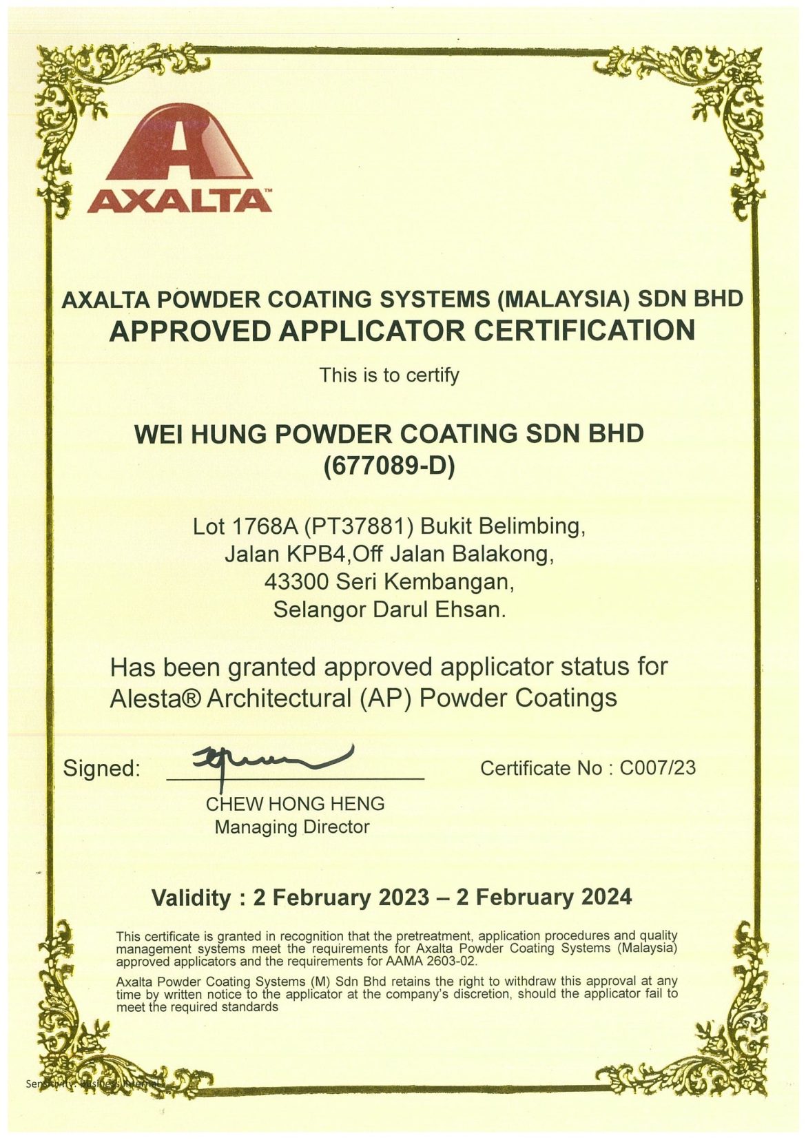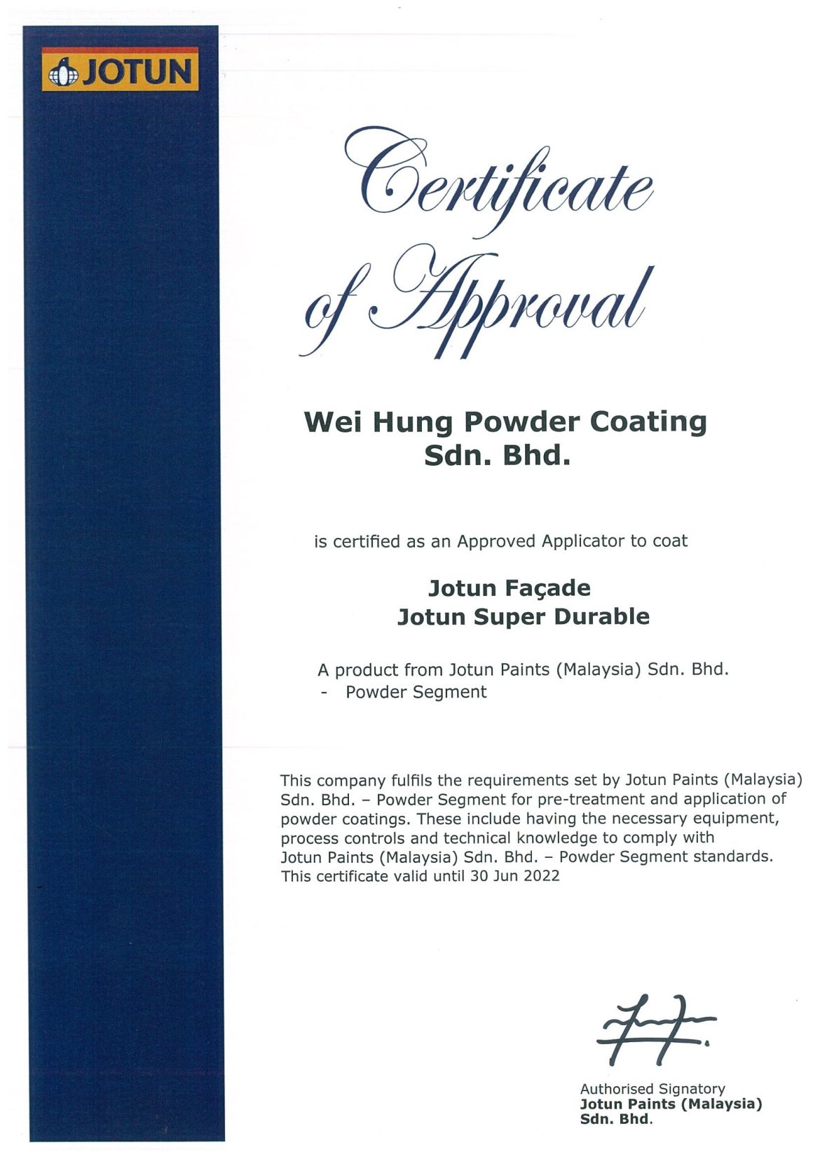 Our strict policy only to utilise the quality epoxies, polyester or any other raw material powders from our authorised suppliers or manufacturer such as Jotun, DGL Interntional, Kossan, PPG, Oxyplast and Axalta.